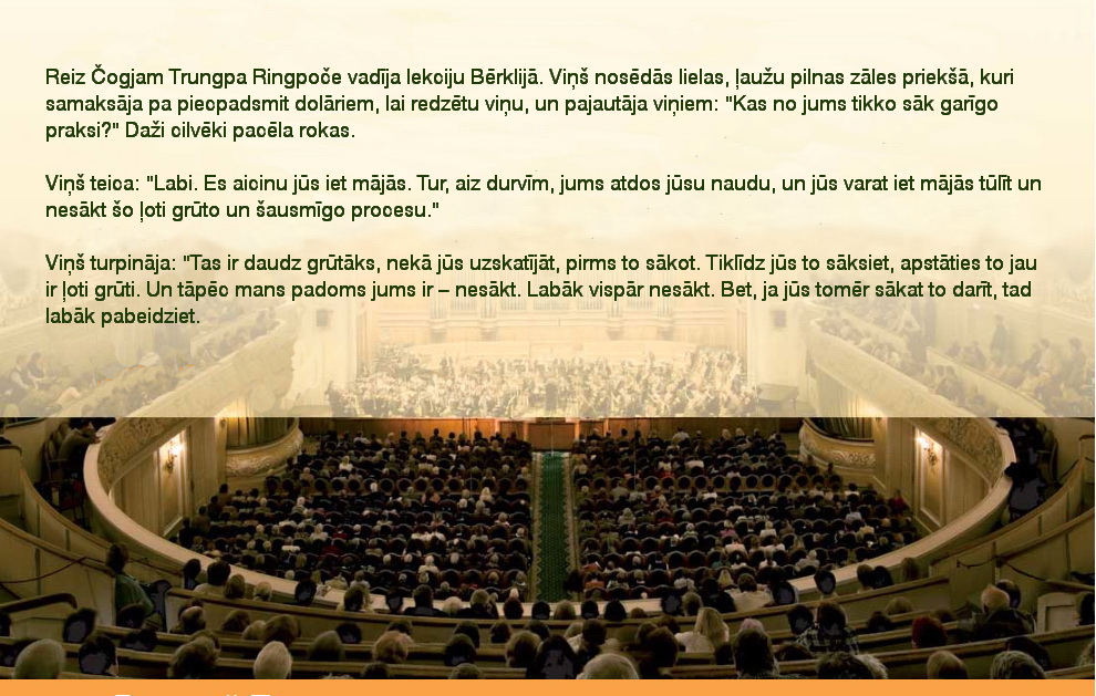 Ir noteikti centieni, iekšējie virzošie spēki cilvēkā, kuri formējas ne no viena vien iemiesojuma un kuri ļauj nekļūdīgi izvēlēties Ceļu un sākt kustēties. Citi cilvēki, kuriem nav pietiekamu iekšēju sasniegumu, lasīs tās pašas grāmatas, tos pašus diktātus, klausīsies tos pašus vārdus, bet šīs visas šķietami pareizās darbības aizvedīs viņus tikai tālāk no Ceļa ilūzijas džungļos.