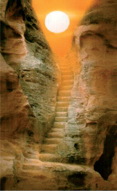 Kāpnes, pa kurām kāpj tas, kas tiecas, ir celtas no ciešanu un sāpju pakāpieniem; mierināt tās var tikai ar taisnprātīguma balsi. Ak, vai tev, mācekli, ja tu esi paņēmis sev līdz kaut vai vienu trūkumu, neatstādams to lejā: jo tad kāpnes salūzīs un nogāzīs tevi. To pakāje stāv dziļā tavu grēku un maldu purvā, un pirms tu uzdrošināsies pāriet pāri platam materialitātes bezdibenim, tev ir jānomazgā savas kājas Atsacīšanās Ūdeņos. Ak, vai tam, kas uzdrošināsies ar netīrām kājām apgānīt kaut vienu vienīgu pakāpienu. Tumši un lipīgi dubļi sacietēs, pielips viņa pēdām un pienaglos pārdrošnieku uz vietas; un viņam kā putnam, ko viltīgs putnu ķērājs noķēris cilpā, vairs nebūs tālākas virzības. Viņa netikumi pieņems atveidus un novilks viņu lejā. Viņa grēki pacels savas balsis kā šakāļi, smiedamies un kaukdami saulrietā; viņa domas kļūs par karapulku, kas sagrābs viņu un aizvedīs vergu gūstā."